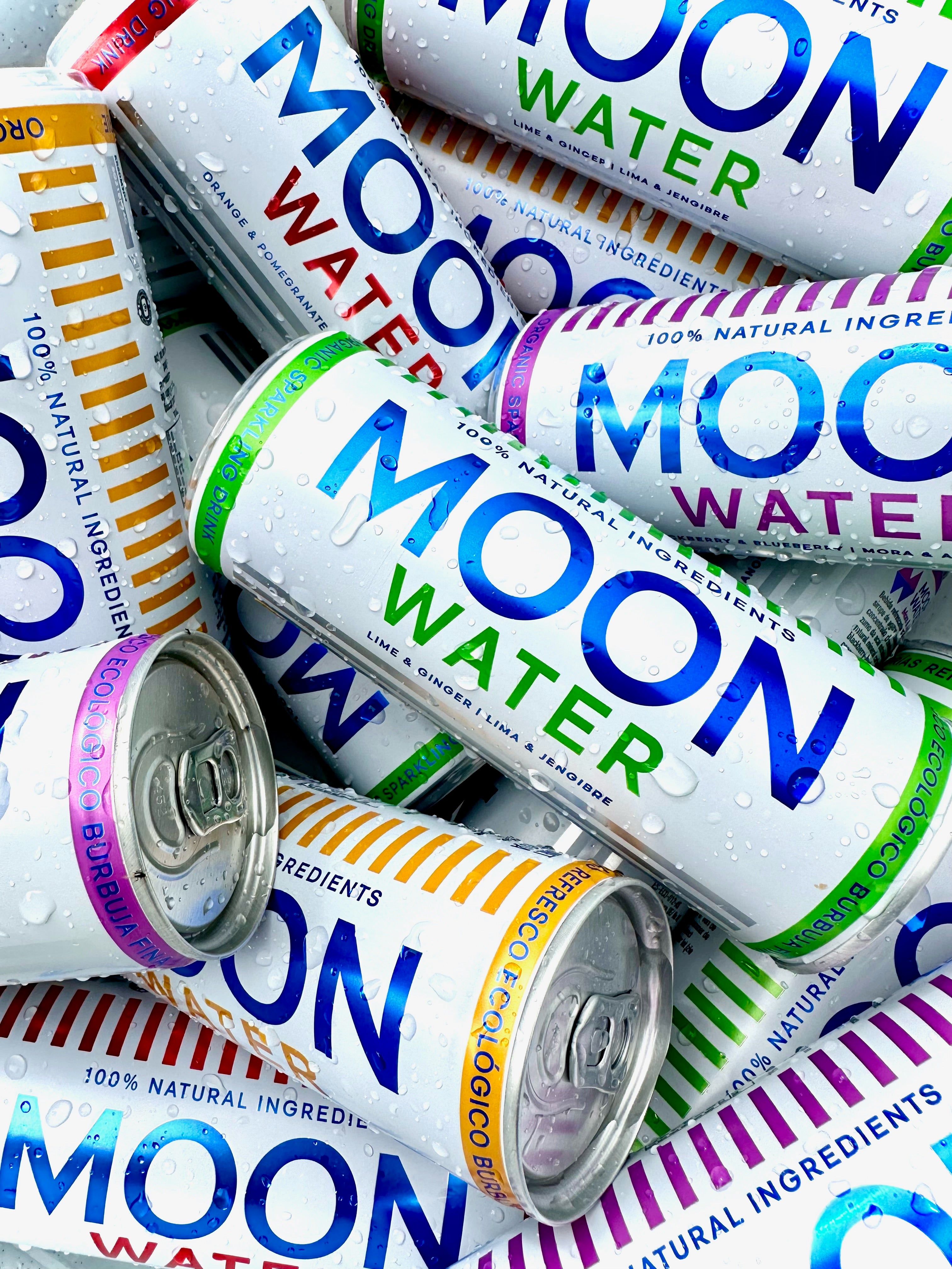 Innovar no es Inventar. Innovar es mejorar aquello que ya existe. Moon Water es un refresco y dirás, pues que gran invento!!!. Aunque suena aparentemente sencillo, mejorar los refrescos tradicionales ha sido un enorme reto. Teníamos claro que nuestros sabores debían de ser diferentes y especiales y por eso creamos 4 variedades de dos sabores cada uno. Por un lado, tienes nuestro clásico y primer sabor que desarrollamos de Lima y Jengibre, que con su toque cítrico, se hace realmente adictivo. Siguiendo con la línea menos dulce tenemos Naranja Sanguina y Granada, una combinación que no te dejará indiferente por lo distinto a cualquier otro refresco de naranja que hayas probado antes. Si eres de los que busca un sabor tropical sin ser empalagoso, con el de Mango y Mandarina te volverás loc@ y funciona perfecto para combinar con cualquier comida asiática. Y detrás de sus colores tentadores, se esconde una explosión de sabor brutal en la propuesta de Mora y Arándanos de la que no te querrás separar si eres de es@s que valoran todos los matices que aportan los frutos del bosque.